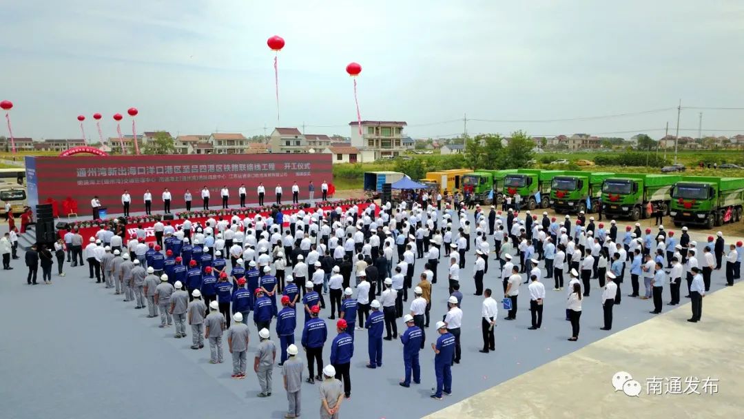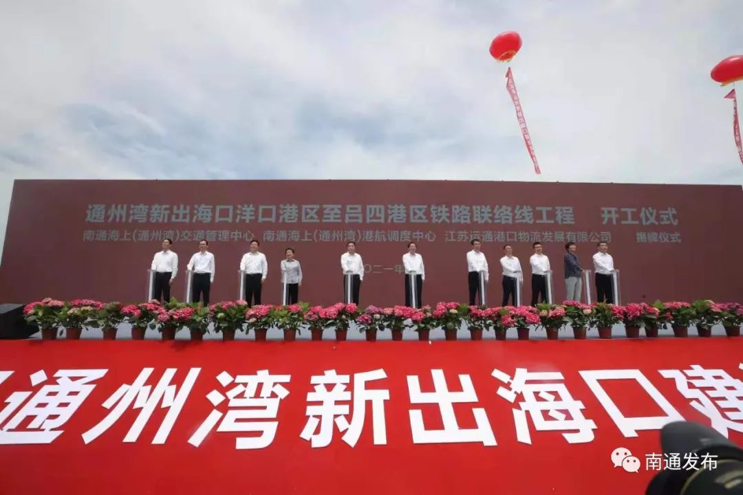 今天(18日)上午,通州湾新出海口洋口港区至吕四港区铁路联络线开工暨南通海上(通州湾)交通管理中心、港航调度中心、江苏运通港口物流发展有限公司(筹)揭牌仪式在洋吕铁路东灶港站项目现场举行,这标志着“铁路连港区、内河到码头、港口通大洋”的江海联运体系建设迈出关键一步,打造国际一流标准的长江集装箱运输新出海口进入快车道。