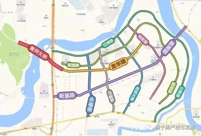 值得注意的是,青坪大桥不仅被纳入市域交通网络重点工程,“十四五”规划关于主城区建设部分中还重点提出了要“推动青坪大桥等建设,提升城市南北跨江交通畅通水平”,可见这座桥对南宁主城区的优化提升有着重大意义。