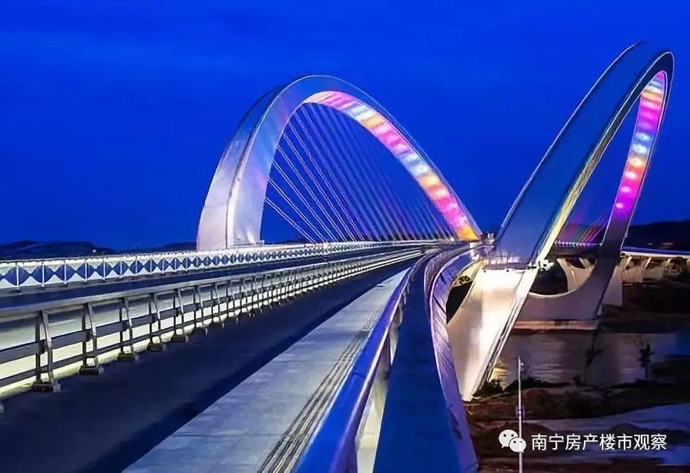 仙葫大桥位于仙葫半岛最南端,连接仙葫半岛和邕宁区,建成可缓解蒲庙大桥的交通压力,推动城市东的发展。