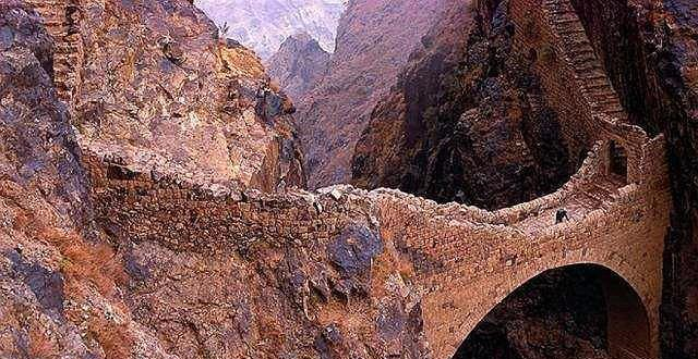 黄土色的表面与左右的山峰融为一体,仿佛并不是人为建造的一般,从一开始它就与这两座山共存。“沙哈拉之桥”很普通,它没有华丽的外表,可却也挡不住它自身散发的一种宏伟气势,这座桥距今已经有400多年了,要知道在很早的古代,我们没有先进的科技,没有挖掘机,没有吊机,没有钢筋混泥土,那这座桥到底是怎么建造的呢?还如此牢固,在400多年的风雨中屹立不倒。